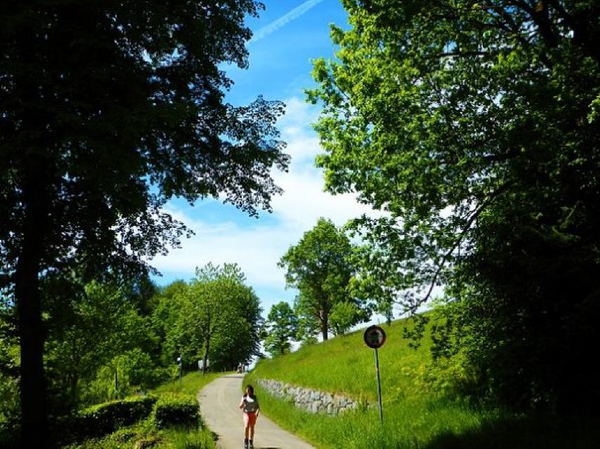 Wir gehen dem Waldrand entlang, überqueren im Wald einen Bach und steigen bald ins Reichenbachtal hinab, um den letzten Anstieg in Richtung Stallbühl (561 m) zu wagen. Der weg führt uns direkt zum Ausgangspunkt beim Elzacher Bahnhof zurück.