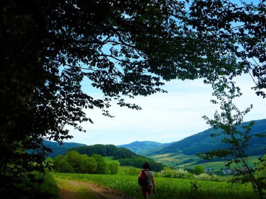 Dann führt der Weg weiter. Unten das Tal, oben das Vogelgezwitscher und dazwischen das Plätschern einzelner Bäche.