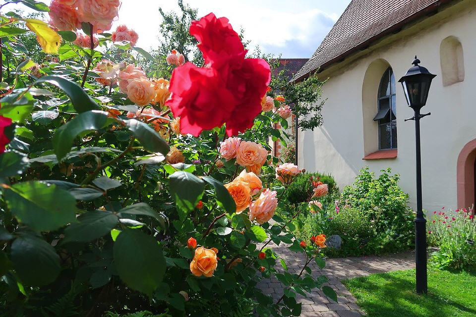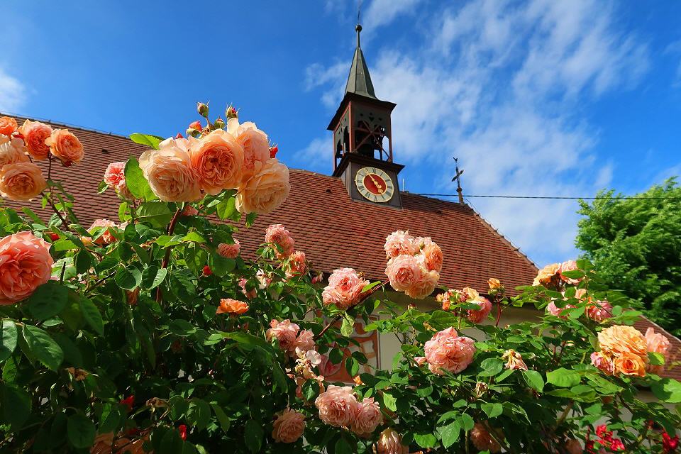 Ein Ausflug nach Zarten im Dreisamtal bei Kirchzarten lohnt sich, insbesondere für den Besuch eines schmucken und schon von weitem gut sichtbaren Gotteshauses. Die St. Johannes-Kapelle im Ortszentrum birgt einen zwar kleinen, aber umso schöneren Kirchgarten. Rosenliebhaber dürften sich hier besonders angesichts des Anblickes und des verströmenden Duftes freuen.