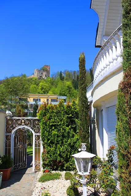 Die imposanten Reste der im Dreißigjährigen Krieg zerstörten Wehranlage mit ihrem markanten Burgfried grüßen schon aus der Ferne. Der bequeme Aufstieg, der nicht mehr als eine halbe Stunde in Anspruch nimmt, beginnt hinter dem Bahnhof. Der Lohn für die geringe Mühe fällt umso reichlicher aus.