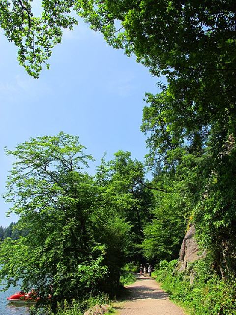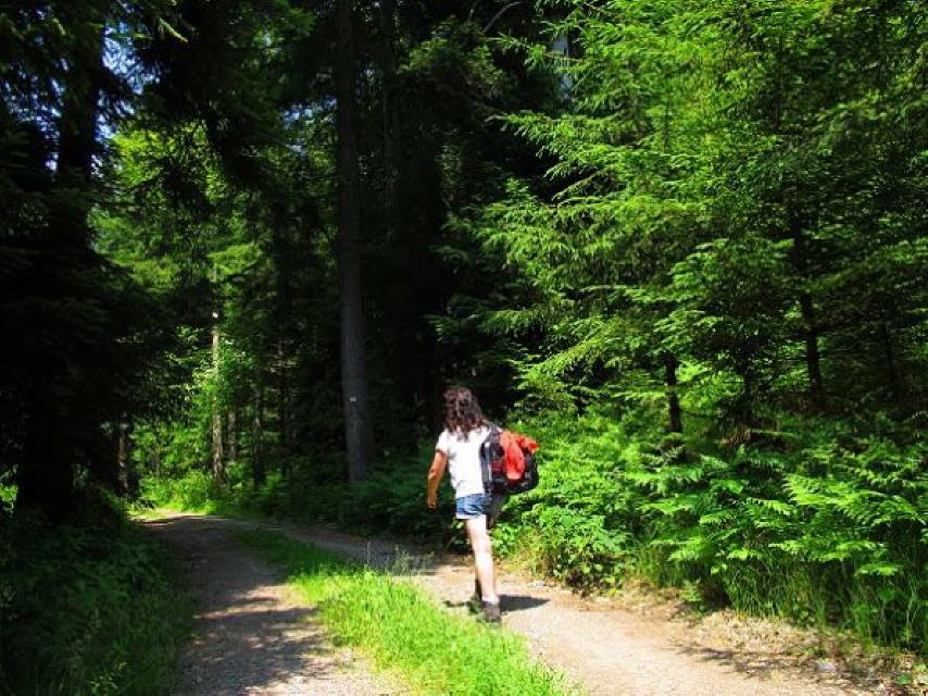 Vom Solfelsen folgen Sie nach einer Pause ein kurzes Stück dem Querweg bis zur Verzweigung beim Spatzenhof. Dort geht es links weiter auf einem Forstweg, der sich im Wald zur Rodungsinsel Günnenbach hinabsenkt. Auch von dort aus bietet sich ein schöner Blick hinunter ins Tal, zum Dinkelberg und den Südschwarzwald. Schließlich ist es nicht mehr weit zum Bergsee. Dort können Sie noch eine Bootsfahrt unternehmen und sich erfrischen, bevor es durch die Allee im Kurgebiet zurück zum Bahnhof geht.