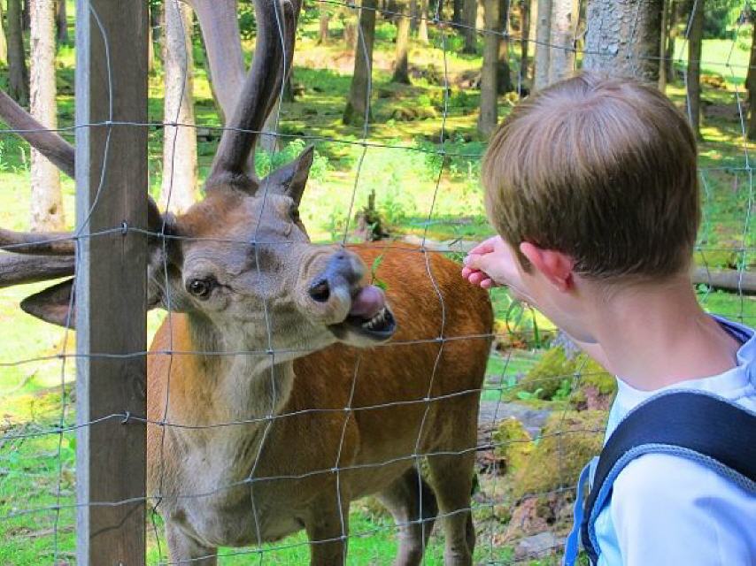 Gehen Sie weiter zur Bergseekurve, wo sich ein kleiner Wildpark befindet. Gleich hinterm Wildparkgehege rechts in Richtung Egg abbiegen. Achtung, denn das Wanderschild zeigt zum Solfelsen geradeaus. Das ist allerdings der Rückweg der Rundwanderung.