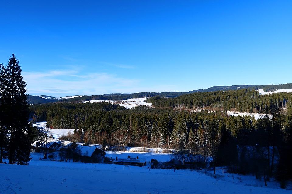 Durch das Winterparadies bei Hinterzarten im Hochschwarzwald führt eine aussichtsreiche Rundtour um die 1015 m hohe Kesslerhöhe. Die Tour misst gerade mal knapp 6 km und ist in 2,5 Stunden gut zu schaffen. Start ist beim Kurhaus in Hinterzartens Ortsmitte. Von dort geht es in südlicher Richtung zunächst durchs Dorf, um schließlich am Waldrand hinauf entlang der Kesslerhöhe zu gelangen. Ab hier beginnt die Winterwanderung durch die herrliche Schneelandschaft.