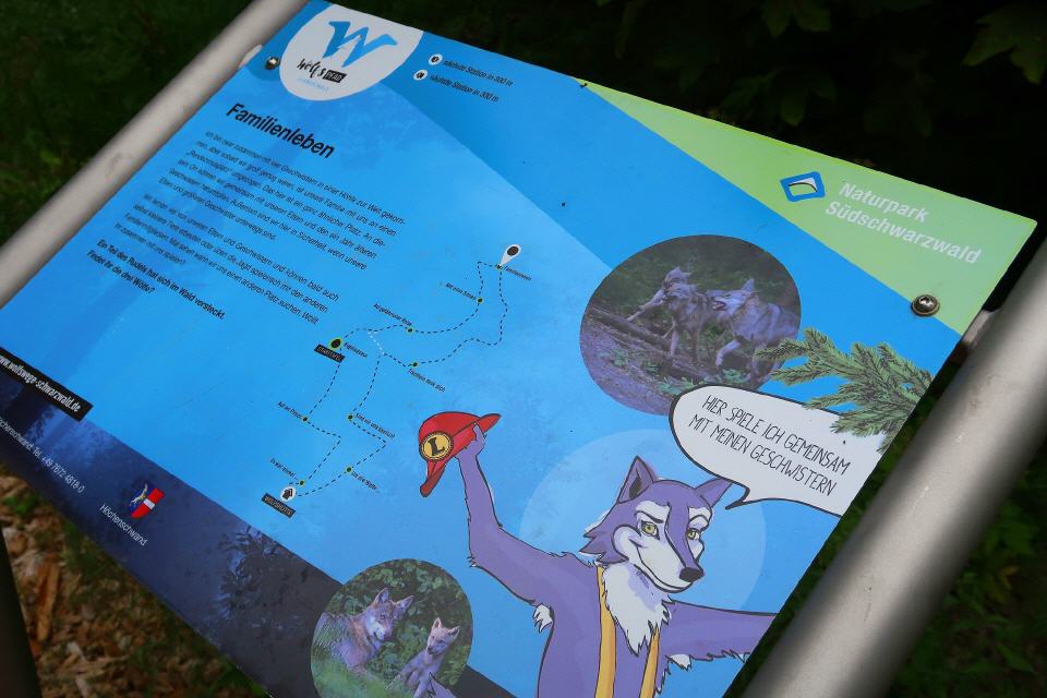 Auf dem Wolfspfad bei Höchenschwand-Strittmatt gehen Kinder und Erwachsene gemeinsam mit Lupus, dem Begleiter und freundlichen Maskottchen des Pfades, auf eine spannende Entdeckungsreise rund um das Leben der Wölfe. Der Name kommt von lateinischen Canis lupus für Wolf. Er gehört zur Familie der Hunde, lebt in Rudeln, wurde ausgerottet und kehrt nun zurück.