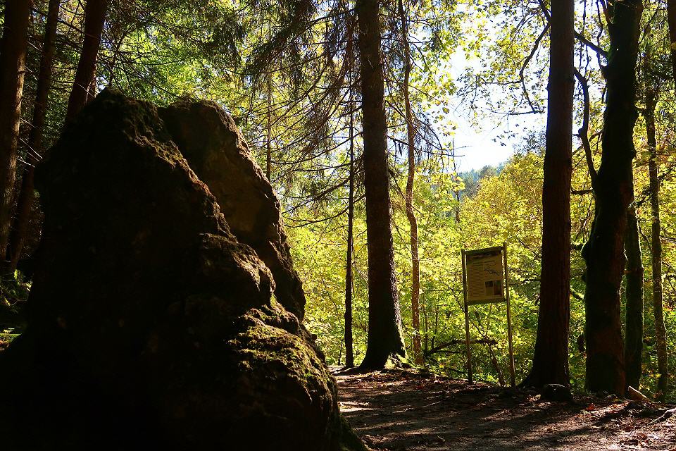 Wunderschön und romantisch ist es, wenn sich das Sonnenlicht in den Wassertropfen des Dietfurter Wasserfalls bricht. Der Wasservorhang streicht über die bemoosten Felsen. An heißen Sommertagen kann man hier wunderbar eintauchen, um sich ein wenig abzukühlen.