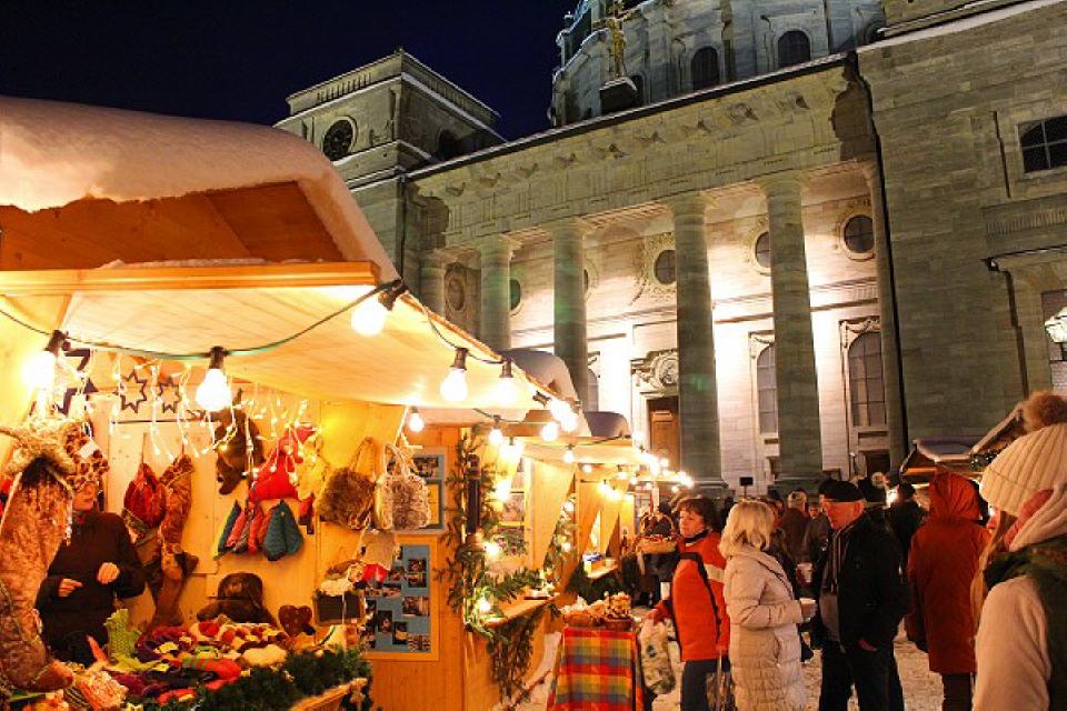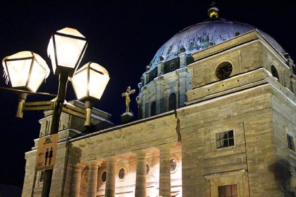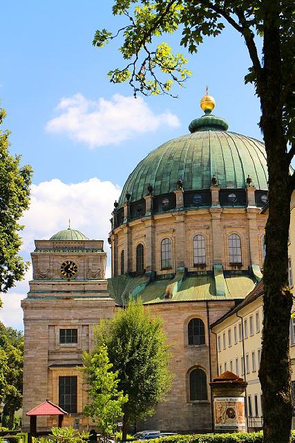 Zu jener Zeit stand die berühmte Abteikirche mit der drittgrößten Kuppen in Europa eben vor der Vollendung. Eingeweiht wurde sie 1783. Keine 100 Jahre später, 1874, erlebte sie eine schwere Brandkatastrophe. 200 Jahre nach der Weihe brachte eine umfassende Restaurierung sie in die Form, in der wir sie heute erleben dürfen. In weißem Marmor poliert erstrahlt die Rotunde im Innern, nur das Gestühl und die Orgel am Ende des Mönchchores stehen dazu im dunklen Kontrast. Gewaltig erscheinen die Dimensionen, und doch ruht alles in vollendet harmonischen Proportionen.