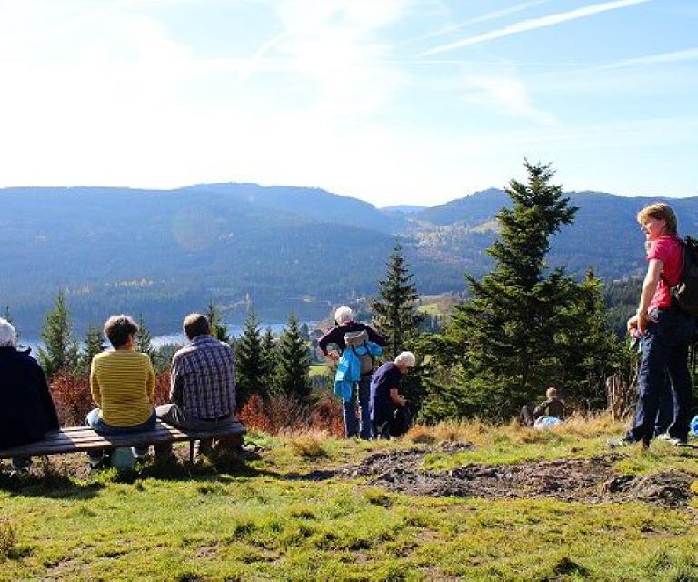 Von hier aus laufen wir zum Hanselefelsen, biegen anschließend links ab und kommen auf einen breiteren Weg. Nach kurzer Zeit eröffnet sich ein toller Ausblick! Über den Ahaberg folgen wir dem Weg in Richtung Bildstein. Auf diesem Wegstück bietet sich die Möglichkeit den direkten Weg zum Bildsteinfelsen fortzuführen oder auf dem neu angelegten Nebenpfad „Pirschpfad“ neue Entdeckungen zu machen. Am Aussichtspunkt Bildstein angelangt genießen wir einen atemberaubenden Blick auf den Schluchsee.