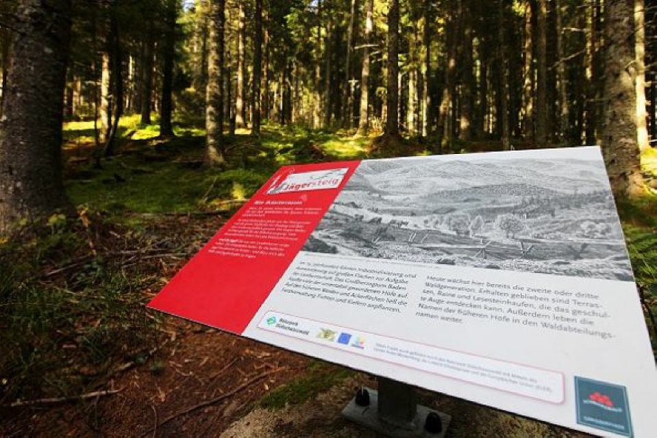 Vom Parkplatz „Im Wolfsgrund“ laufen wir durch die Unterführung der B500, folgen dem Wanderweg nach links und überqueren die L156 nach Lenzkirch. Nach der Kreuzung folgen wir dem Wander- und Radweg entlang der Freiburger Straße (B500). Nach kurzer Zeit sehen wir schon das Eingangsportal des Schluchseer Jägersteigs. Hier tauchen wir in den Bannwald ein und folgen dem schmalen Pfad, an einem Holzplatz vorbei hinauf zur Stutzhütte.