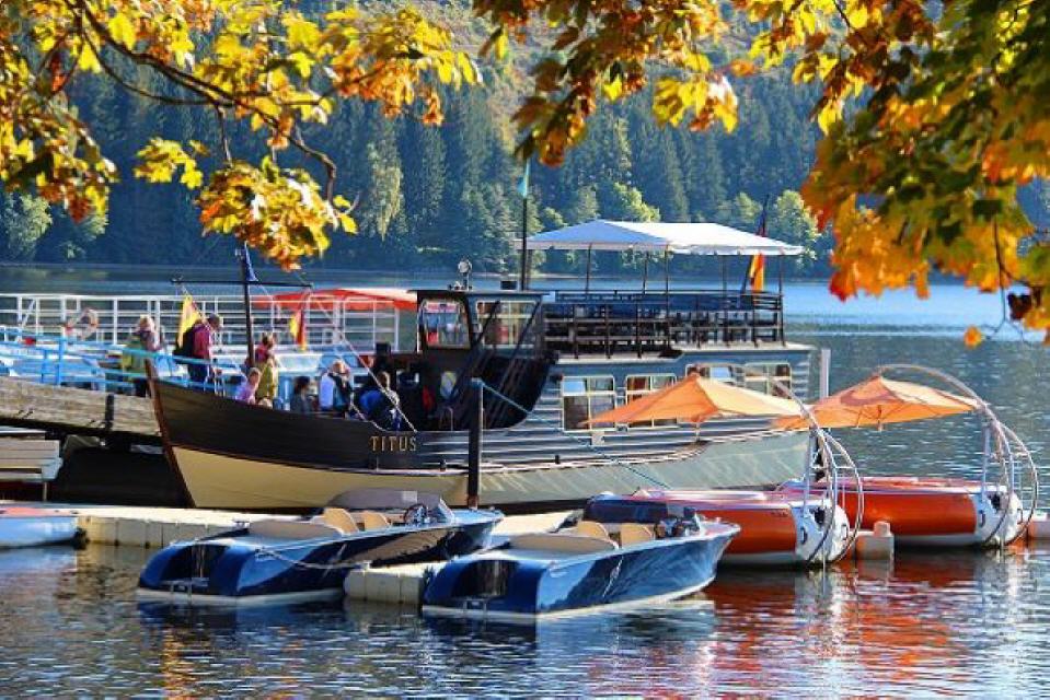 Er ist in aller Welt bekannt: der Titisee. Er bedeckt eine Fläche von 1,3 Quaddratkilometer und ist durchschnittlich 20 Meter tief. Seine Entstehung verdankt er dem Feldberggletscher, dessen im Pleistozän gebildete Moränen heute seine Ufer begrenzen. Der Ausfluss des Sees auf 840 Meter ü.d.M. ist die Gutach, die zur Wutach wird und die wildromantische Wutachschlucht bildet. Am Nordufer liegt der gleichnamige Kurort, Teil der Stadt Titisee-Neustadt. Souvenirläden und Cafés säumen die verkehrsberuhigte Seepromenade.