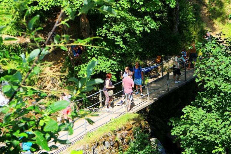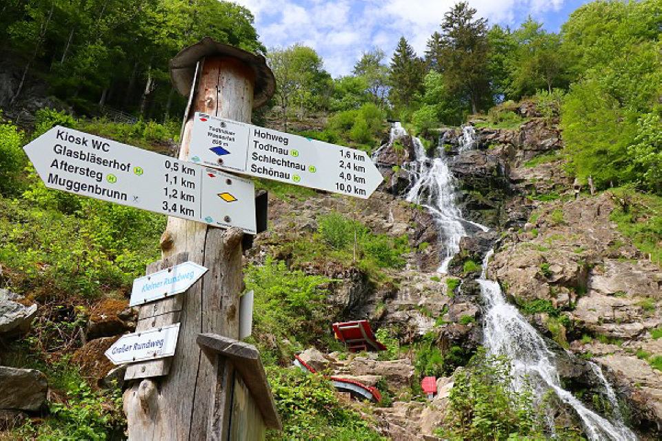 Spektakuläre Wasserfälle. Zwei Wasserfälle und zwei Wolfsschluchten, Wald- und Wiesenpfade, Holzbrücken und schmale Steige: Das ist der neue Premiumwanderweg bei Todtnau im südlichen Schwarzwald. Der elf Kilometer lange „Wasserfallsteig” verbindet den 50 Meter hohen Fahler Wasserfall mit dem 97 Meter hohen Todtnauer Wasserfall. Auf den ersten sieben Kilometern geht es stets bergab – vom Feldbergpass über den Fahler Wasserfall nach Todtnau. Nach einer Rast auf dem Marktplatz wird es anstrengender: Nun geht es fast vier Kilometer nur noch bergauf über den spektakulären Todtnauer Wasserfall nach Todtnauberg. Von dort können Unermüdliche in rund 10 Kilometern über die Todtnauer-Hütte zurück zum Feldbergpass wandern. Man kann aber auch unterwegs abkürzen und mit dem Bus zum Ausgangspunkt zurückfahren.