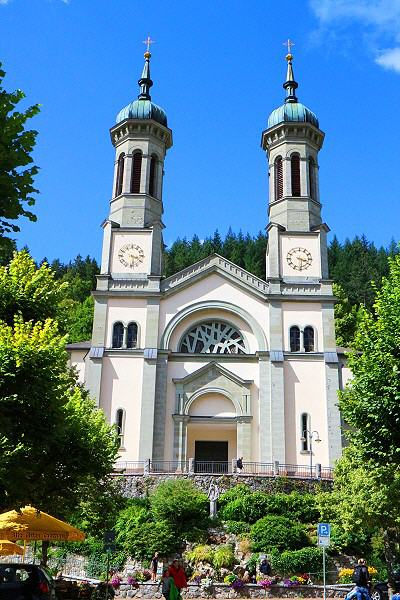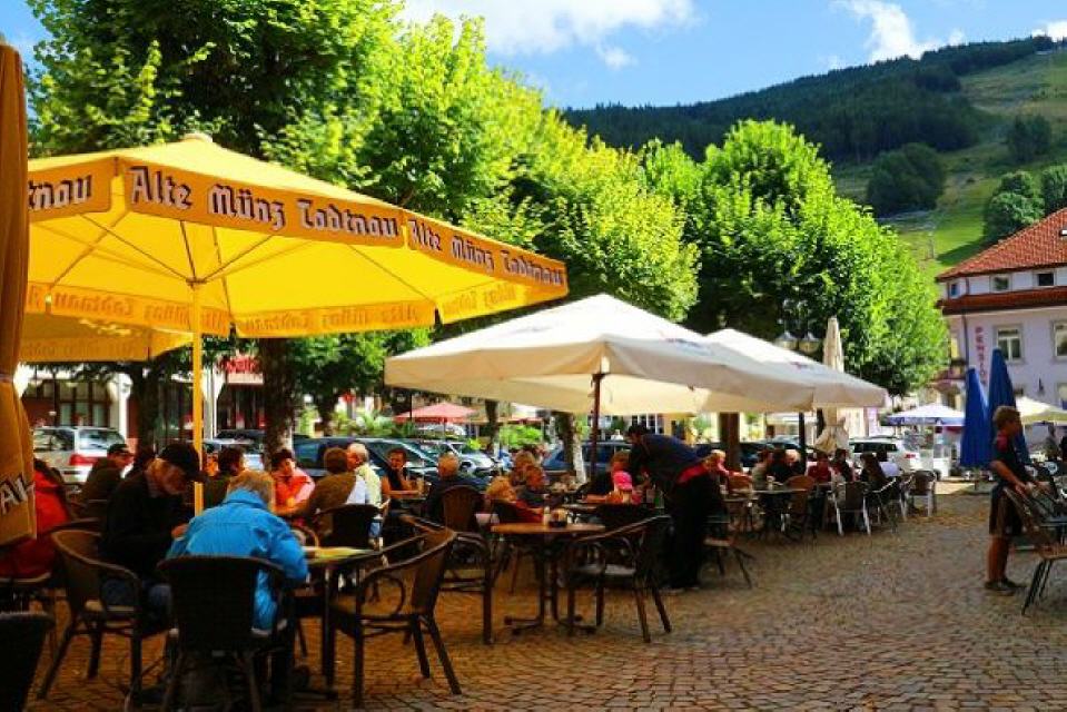 Die zweitürmige Pfarrkirche ist nach dem Stadtbrand von 1876 neu aufgebaut worden. Unmittelbar davor liegt der Marktplatz, der von Cafés und Wirtshäusern umsäumt ist. Nordöstlich am Stadtrand erinnert ein monströses Alemannenschwert aus Stein an die aus Todtnau stammenden Gefallenen der Weltkriege. Östlich von Todtnau erhebt sich das 1158 m hohe Hasenhorn, das per Sessellift leicht “erstürmt” werden kann.