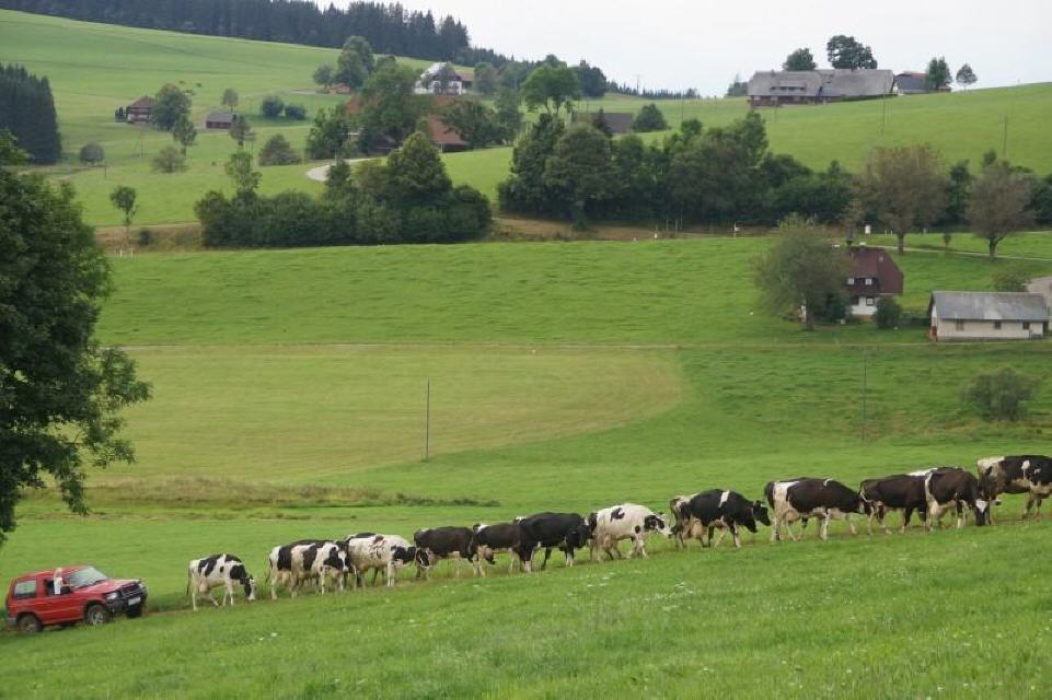 Unser Hof in herrlich ruhiger Süd-Hanglage umfasst insgesamt 70 ha Land, davon sind etwa 40 ha Grünland und 30 ha Wald. Wir haben rund 40 Milchkühe, 45 Rinder zur Aufzucht und viele Kleintiere wie Hasen und Hühner. Unsere Milch wird bei der „Schwarzwaldmilch“ abgegeben.