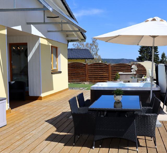 Das Sonnenhüsli ist ein besonders reizvolles, eingeschossiges Ferienhaus zwischen Titisee und Schluchsee im Schwarzwaldort Lenzkirch (Ruhbühl) gelegen. Das auf 900 Höhenmeter gelegene Ferienhaus ist liebevoll ausgestattet. Viele Details tragen zum besonderen Ambiente des Hauses bei. Antiquitäten, schöne Spiegel und Bilder wurden geschmackvoll arrangiert. Die angenehme Beleuchtung trägt für ein besonderes Raumklima bei. Der im Garten befindliche Whirlpool ist das ganze Jahr auf 36 Grad beheizt. Auch befindet sich auf dem Grundstück eine Wellnesshütte sowie eine Fassauna, so dass schlechtes Wetter keine Chance hat. Hunde sind bei uns herzlich willkommen, da Sie sich in dem auf 1,80 m uneinsehbaren, eingezäunten Grundstück austoben und Frauchen und Herrchen nach Herzenslust entspannen können.