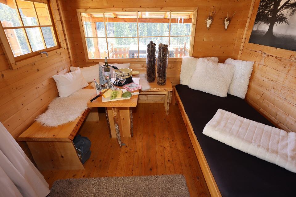 im Garten Wellnesshütte mit Musik und schöner Beleuchtung
