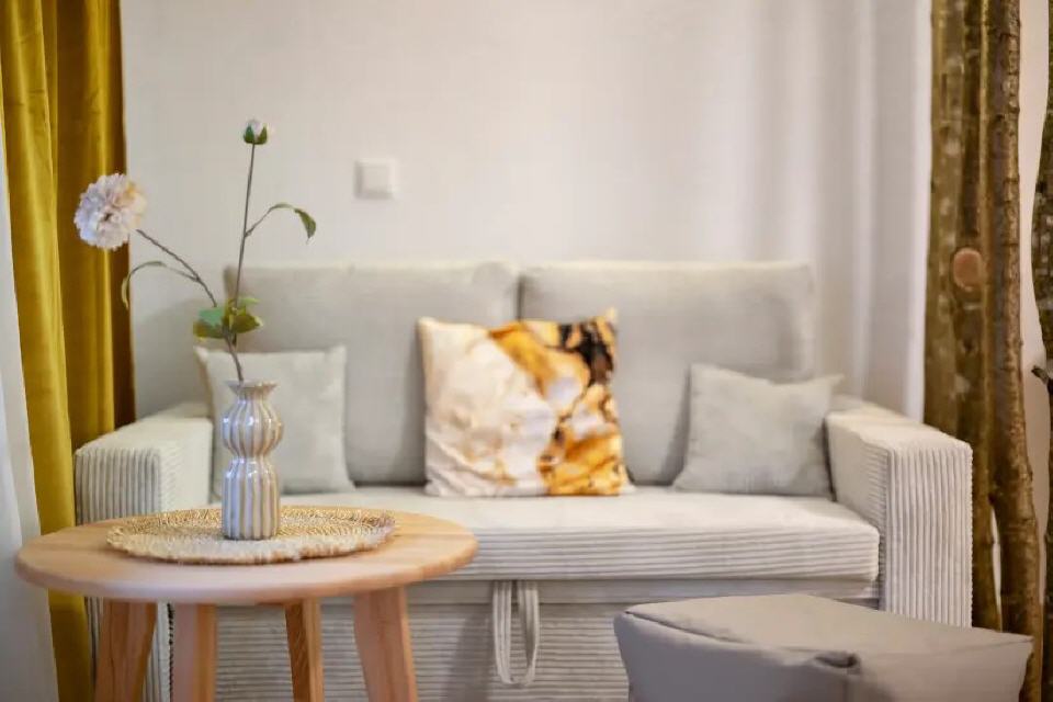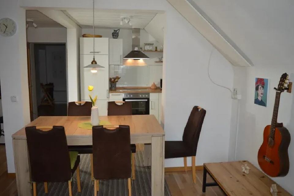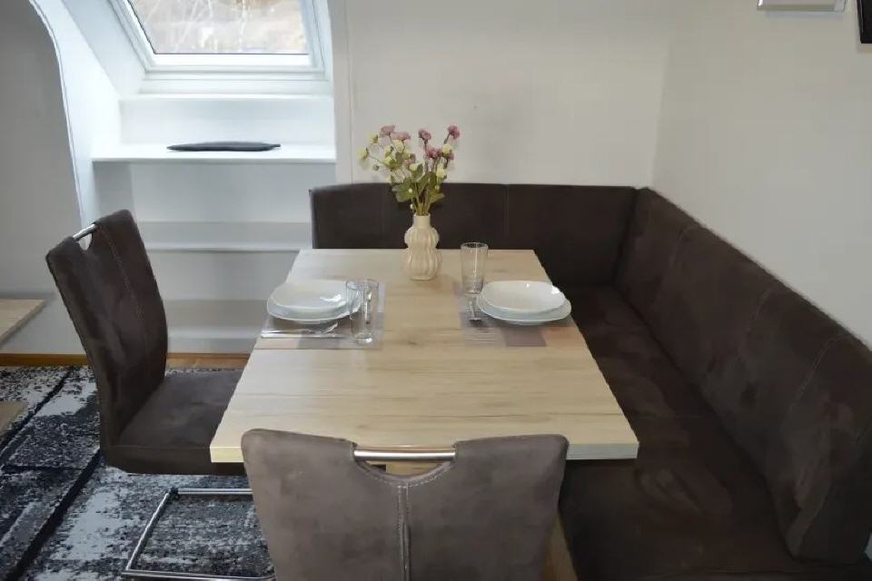 A2 - 2-Raum-Apartment für bis zu 6 Personen: 1 Wohnzimmer mit SmartTV Funktion, Schlafsofa für 2 Personen, Hängesessel, 1 Schlafzimmer mit Doppelbett (180cm), 1 Etagenbett, Schreibtisch, 1 Kleiderschrank, große Küche mit Backofen und Spülmaschine, Herd, großer Kühlschrank, Kaffeemaschine, Toaster, Wasserkocher, großer Esstisch mit 8 Stühlen, Bad mit Badewanne, Fön und Handtüchern, Terasse mit direktem Gartenzugang. Es sind max. ein großer Hund oder zwei kleine Hunde erlaubt. Hunde dürfen keinesfalls auf Sofa oder Bett!