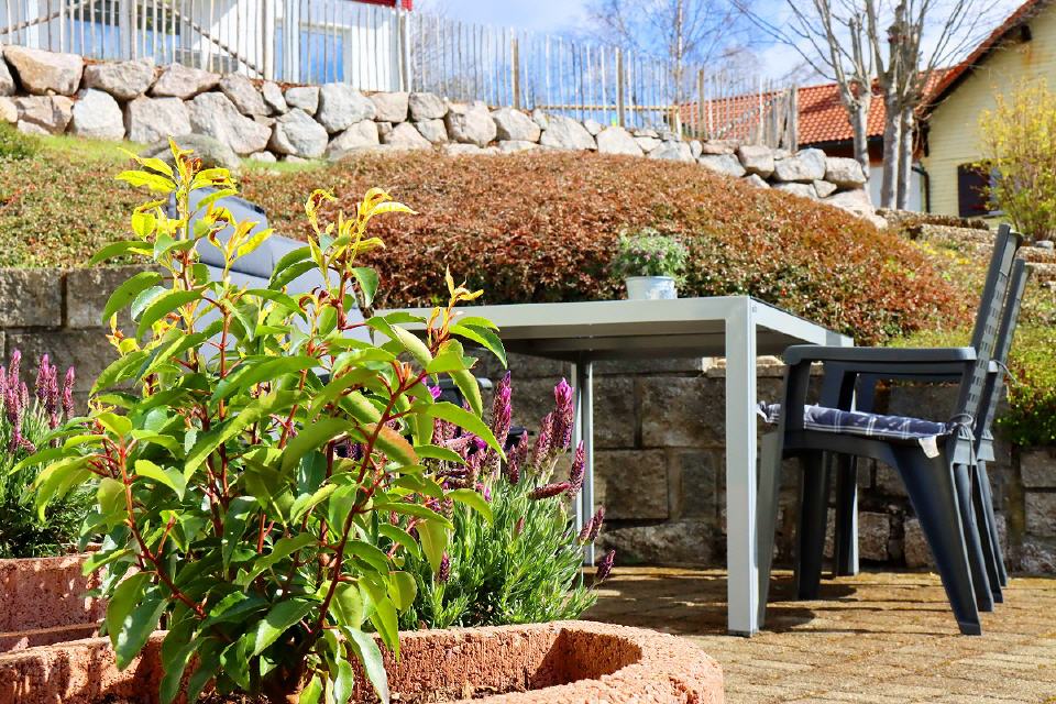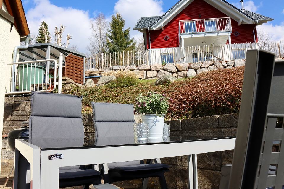 - Außensitzplatz, Tisch, 4 Stühle, Weber-Holzkohle-Grill