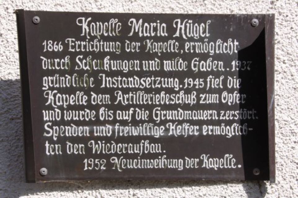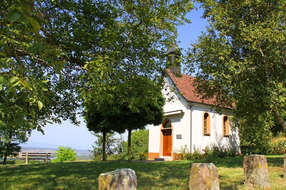 Kapellenberg & Wallfahrtskapelle Maria Hügel. Der Kapellenberg ist benannt nach der Wallfahrtskapelle Maria Hügel, die 1866 über einer frei stehenden, älteren Marienstatue gebaut wurde. Sie wurde 1945 bis auf die Grundmauern zerstört und 1952 wiederaufgebaut. Die ebenfalls zerstörte ursprüngliche Marienstatue ist durch eine neue Holzskulptur ersetzt. Von diesem Hügel öffnet sich ein weiter Blick in die Rheinebene sowie bei klarem Wetter bis in die Vogesen zum Hartmannswillerkopf. Bamlacher Kapellenberg heißt auch eine Weinlage, in der hauptsächlich Weiß- und Grauburgunder, Müller-Thurgau und Spätburgunder gestockt wird.