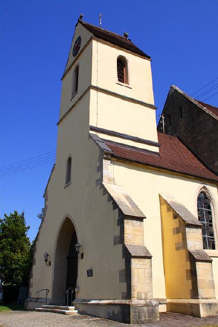 St. Peter und Paul. Die Anfänge der Kirchengemeinde St. Peter und Paul – soweit sie dokumentarisch nachweisbar sind – reichen bis in das 11. und 12. Jahrhundert zurück. Die älteste Kirche (1275) dürfte auf dem “Käppele-Acker” in Richtung Rheinweiler gestanden haben, später auch “niedere Kirche” genannt (ca. 30 Meter tiefer als die jetzige Kirche). Von der dann errichteten Kirche steht nur noch der Turm aus dem 14. / 15. Jahrhundert, in dem ursprünglich der Chor der Kirche lag, während sich das Kirchenschiff westlich anschloss.