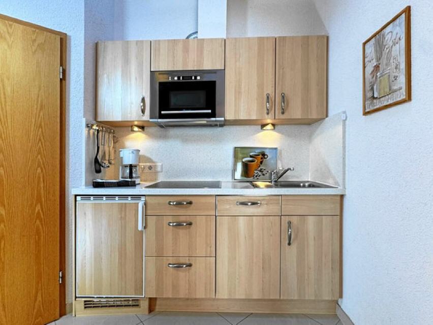 Voll eingerichtete Küche mit vielen Extras. Auch die Geschirrtücher sind Teil der Ausstattung.