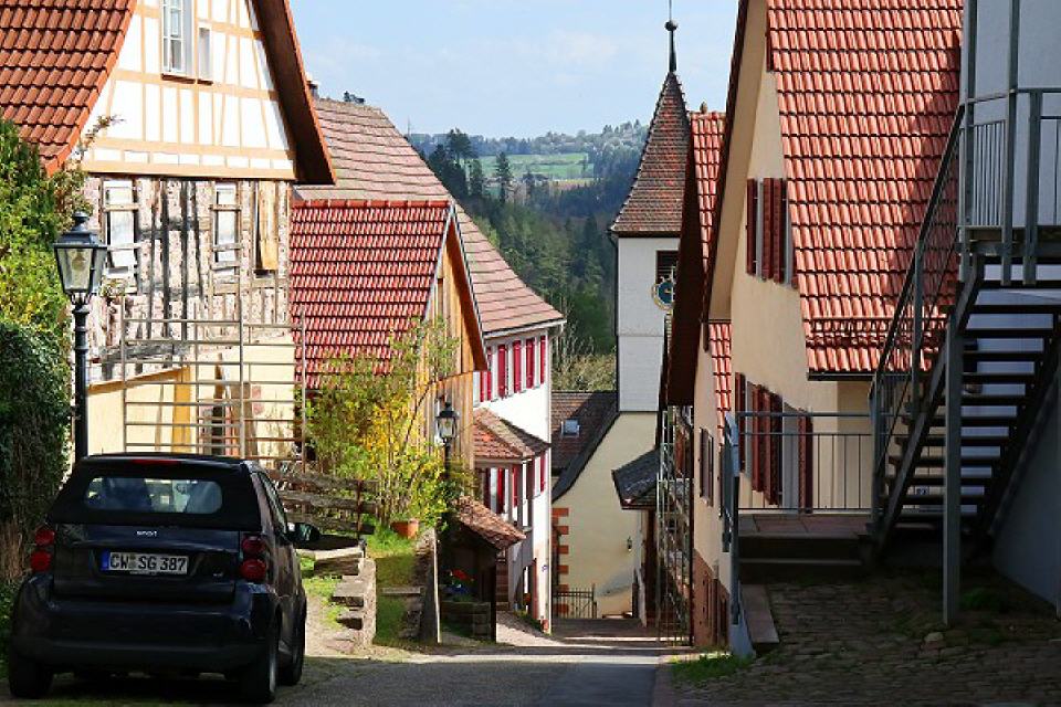 Die ehemalige Stadt Berneck im Schwarzwald ist wirklich winzig. Sie galt einst als zweitkleinste Stadt in Württemberg. Heute gehört sie zur Stadt Altensteig. Berneck – vor allem die auf einem Bergsporn gelegene Oberstadt – ist ein beliebtes Touristenziel. Der Ort wird dominiert von der durch ihre Schildmauer berühmten Burg Berneck aus der späten Stauferzeit. Die Schildmauer ist 38 Meter hoch und bis zu 2,60 Meter dick. Die Burg ist noch immer von den Herren von Gültlingen bewohnt.
