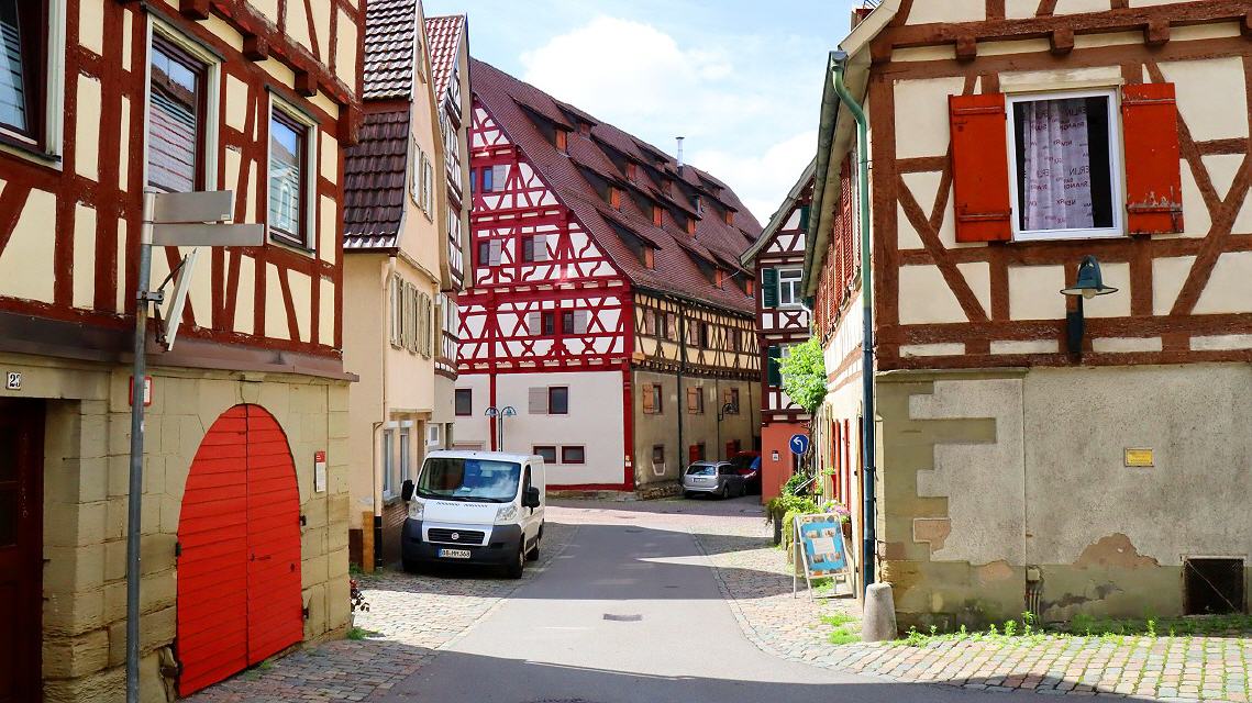 Die Fachwerkbauweise ist typisch für das 15. Jahrhundert, vor allem die Verblattungen (zwei miteinander zu verbindende Balken werden beide so ausgeschnitten, dass sie plan übereinander zu liegen kommen) sowie die starken Geschossvorkragungen. Diese sind auch beim Gebäude Stuttgarter Straße 22 zu sehen (linker Teil des Gebäudes). Wohl seit Beginn des Deutschen Kaiserreiches 1871 gab es in der Stuttgarter Straße 18 die Gaststätte „Zum Deutschen Kaiser“, die bis 1989 bestand. 1990 wurde das Gebäude renoviert und dabei nach alten Befunden die originale Bemalung des Fachwerks in Ocker mit Schmuckstrichen an den Rändern der Gefache wiederhergestellt. Bei Grabungen im Keller des Gebäudes entdeckte man sogenannte Nachgeburtsbestattungen. Vom Mittelalter bis ins 19. Jahrhundert war es ein verbreiteter Brauch, die Plazenta in Töpfen im Keller zu vergraben, um das neugeborene Kind vor bösen Einflüssen zu schützen. Ähnliche Funde sind aus der näheren Umgebung, z.B. aus Sindelfingen, aber auch aus dem Heilbronner und Ludwigsburger Raum bekannt.