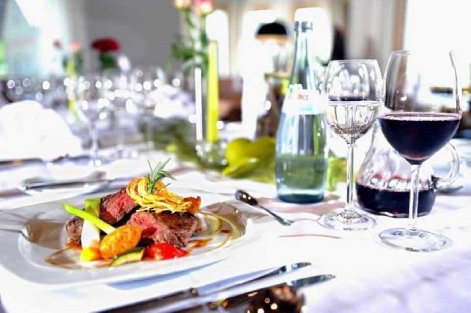 Erleben Sie schwäbische Gastfreundschaft! Sie genießen unsere regionale Küche mit Fleisch- und Wurstspezialitäten. Unser Chef kocht persönlich. Auf Wunsch kochen wir Ihnen Diätessen, auch vegetarische Gerichte fehlen nicht in der Speisekarte. Bei Halbpension und Vollpension haben unsere Gäste freie Menüauswahl. Am Nachmittag lädt unsere Gartenterrasse zu selber gebackenen Kuchen sowie zu Kaffee ein. Oder an heißen Tagen dürfen Sie sich auf erfrischende Eisspezialitäten freuen. Unsere Weinkarte lädt Sie ein zu einem Viertele beim gemütlichen Zusammensein.