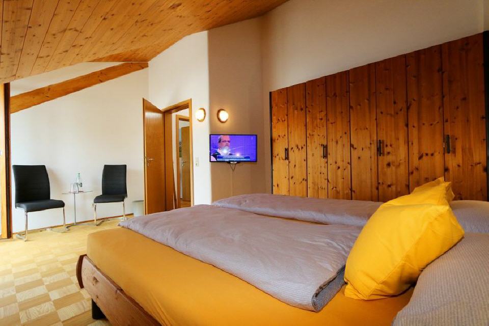 Doppelschlafzimmer: Doppelbett (180x200), Kleiderschrank, Sitzgelegenheit mit kleinem Tisch, Flachbildschirm