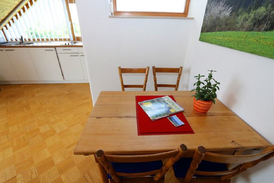 Die Ferienwohnung ist eingerichtet mit großer Wohnküche, Doppelschlafzimmer, Badezimmer und Flur. Sie kann bei Bedarf um ein Einzelzimmer erweitert werden. Allergikerfreundlich durch wischbare Parkettböden, Zentralheizung, keine Haustiere. Bettwäsche, Handtücher und Geschirrtücher vorhanden.