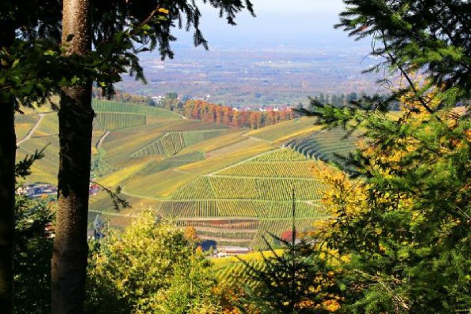 Wir folgen dem Weg mit Blick in die Rheinebene und gelangen darauf in ein Waldstück, worauf wir die Kapellenruine „St. Anton“ erreichen. Über einen kleinen Pfad führt uns der Weg weiter zur „Maiglöckchenhütte“, wo wir wieder eine originelle Rastmöglichkeit mit Ausblick vorfinden. Weiter durch den Wald dürfen wir ca. 200 Meter nach der Maiglöckchenhütte einen scharfen Knick nach rechts nicht verpassen. Nach wenigen Metern verlassen wir den dichten Wald und vor uns öffnet sich wieder das einzigartige Durbacher Weinpanorama.