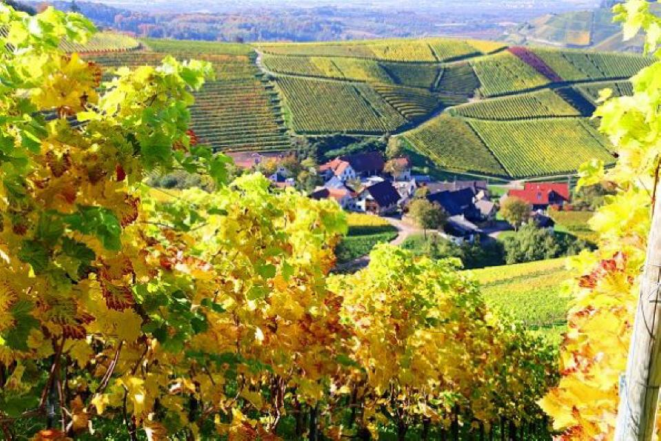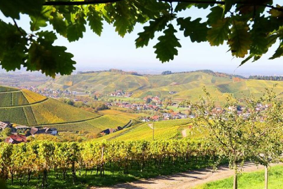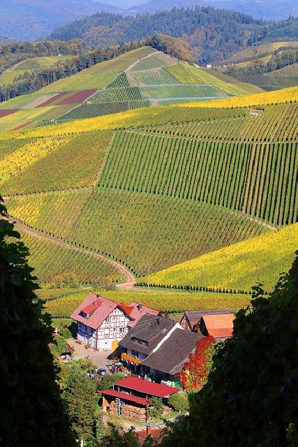 Weiter geht's bergab durch die Weinberge, vorbei an den Hofgütern im hinteren Lautenbach talauswärts zur „Pia-Hütte“. Kurz vor diesem idyllischen Rastplatz biegen vom breiten Schotterweg nach links ab. Über kleine Serpentinen erfolgt der Abstieg zu den beiden Weinbaubetrieben „Vollmer“ und „Huber“, die in direkter Nachbarschaft im Lautenbachtal liegen. Ein kleiner Zwischenstopp, um ein frisches Gläschen Durbacher Wein zu verkosten ist hier natürlich Pflicht! Die kleine Erfrischung können wir auch gebrauchen, denn es gilt, gleich auf der gegenüberliegenden Talseite im Lautenbach noch einmal einen Anstieg mit ca. 100 Höhenmetern zu bewältigen. Auch hier empfiehlt sich am höchsten Punkt des Anstiegs wieder inne zu halten, um das Panorama vor sich zu genießen.