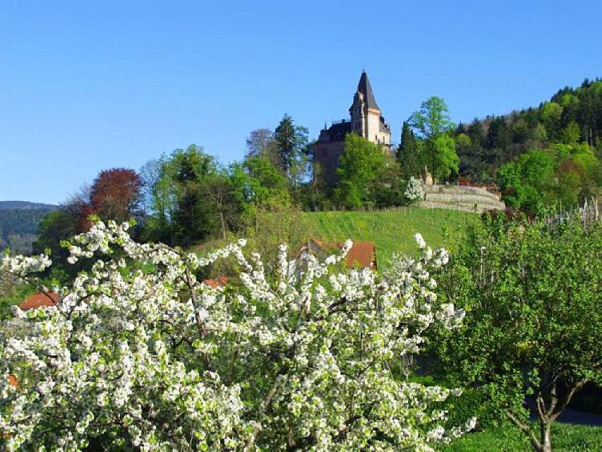 • Kappelrodeck liegt am Eingang des Achertales in einer traditionsreichen Weinbaugegend an der Badischen Weinstraße. Auf der anderen Talseite und von der Ferienwohnung gut sichtbar liegt das markanteste Bauwerk der Schwarzwaldgemeinde: Schloss Rodeck. Es wurde im 11. Jahrhundert erbaut und thront auf einem Bergvorsprung mit herrlicher Aussicht in das Rheintal. Hier lebte die "Hex vom Dasenstein", ein Name, der Weinkennern ein Begriff ist.