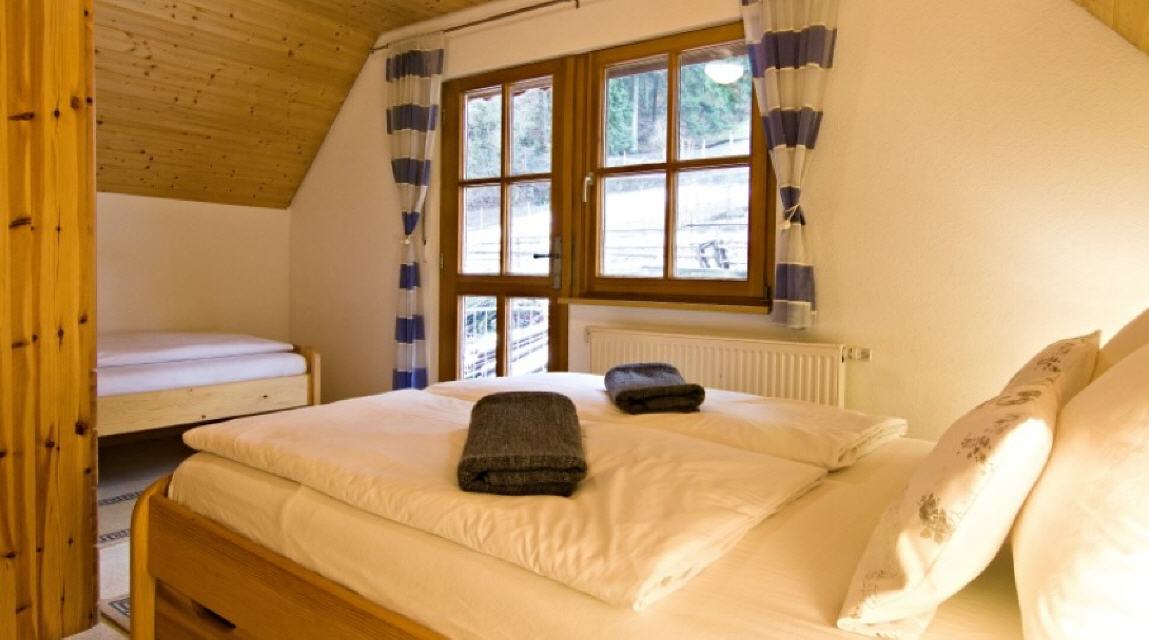 1 Schlafraum mit Doppelbett, Einzelbett und zus. Schlafmöglichkeit
