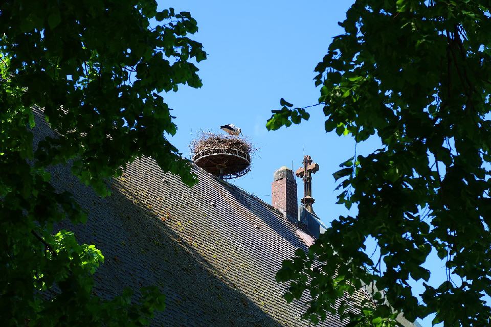 - Storchenplastik beim Rathaus. Vom Breisacher Künstler Helmut Lutz unmittelbar am Alten Rathaus in die Glotter gestellt.
