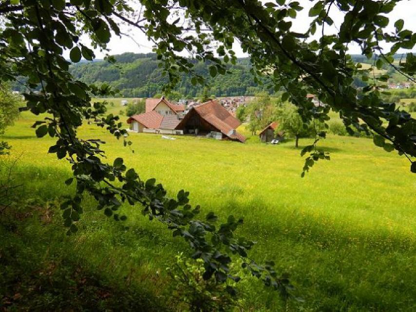 Wir gehen dem Waldrand entlang, überqueren im Wald einen Bach und steigen bald ins Reichenbachtal hinab, um den letzten Anstieg in Richtung Stallbühl (561 m) zu wagen. Der weg führt uns direkt zum Ausgangspunkt beim Elzacher Bahnhof zurück.
