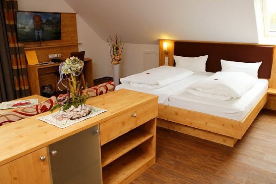 - Komfort Doppelzimmer "Deluxe" (42 am) im Stammhaus mit begehbarer Dusche, separates WC, Haarfön, Telefon, WLAN, Sat-TV und großer Loggia mit herrlichem Ausblick, Klimaanlage ab 66 €