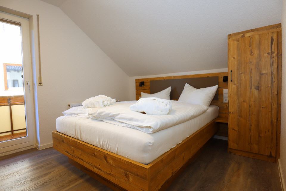 - Fewo "Tafelbühl", Stammhaus, Typ C, 78 qm, 1. OG, bis zu 5 Personen, 3 Schlafzimmer mit 2x Doppelbett, 2 DZ und 1 EZ, Wohnzimmer mit Sat-TV, großer Bildschirm, Internet, WLAN kostenfrei, Küche mit Geschirrspüler, 2x Dusche, 2x WC, Badewanne, großer Balkon. Preis Vorsaison ab 86 €, Hauptsaison ab 89 €