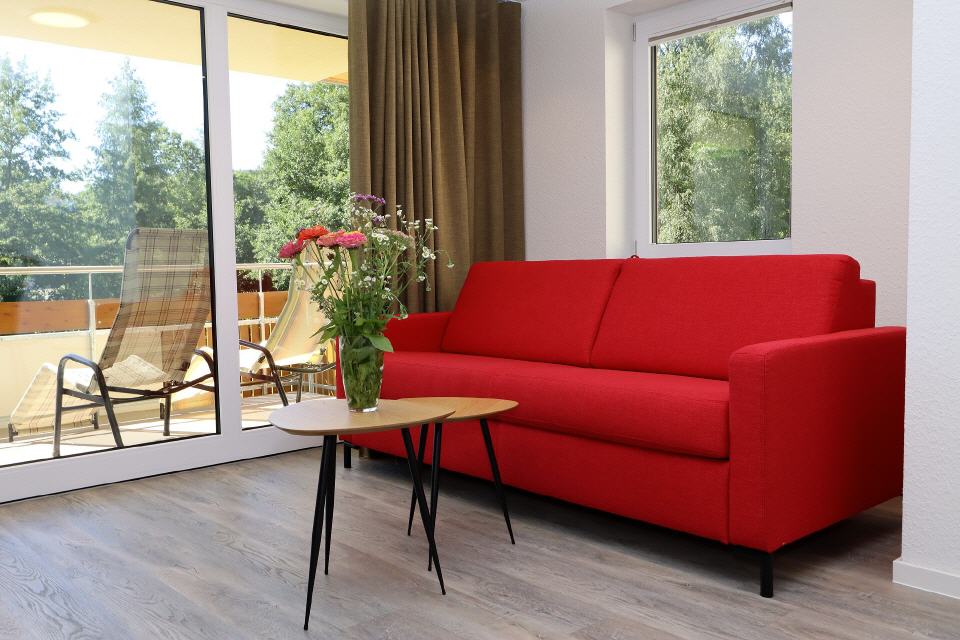 - Barrierefreies Doppelbettzimmer "Deluxe", 48 qm, im Sonnenflügel, Badezimmer teilw. mit Doppelwaschbecken, Dusche, Haarfön, Kosmetikspiegel, WC, Telefon, WLAN (kostenfrei), Sat-TV, Minibar, Safe, gemütliche Wohnecke, Südbalkon oder Terrasse mit herrlichem Ausblick zu den Schwarzwaldbergen ab 62 €