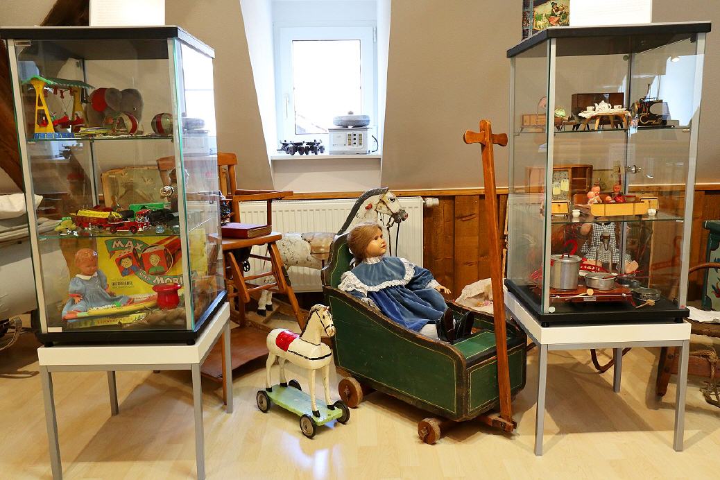 Die Heimatstube beherbergt Bilder, Urkunden und Grafiken dieser Entwicklung. Der bäuerliche Charakter des früheren Dorfes kommt zur Geltung in den ausgestellten Trachten, den landwirtschaftlichen Geräten und Möbeln aus dem Hänslehof, einem alten Vogtshof der Johanniter. Zu sehen sind ferner ein ehemals verwendeter Holzbadezuber und Kleinutensilien der ehemaligen Badehäuser und eine kleine Küche mit allem, was die Hausfrau damals verwendete. In der Schlafstube sind wertvolle Wäschestücke ausgestellt.