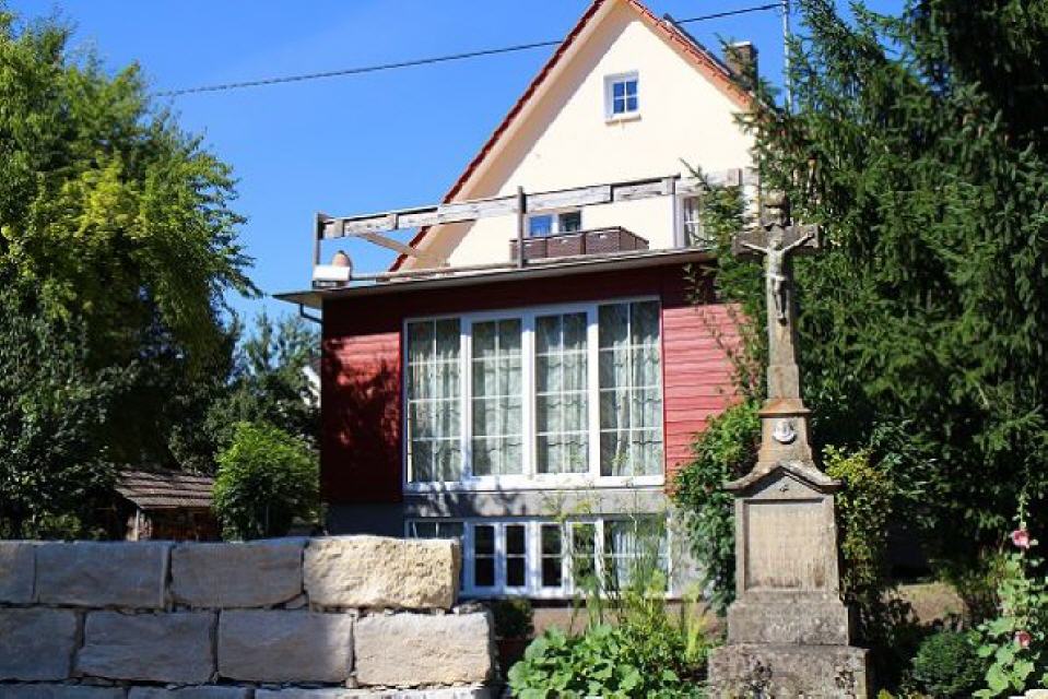 Aus Dankbarkeit für die Rückkehr aus dem Krieg ließen die Eltern, Martin und Olivia, geborene Käfer, 1960 das kleine Gotteshaus errichten und widmeten es dem Heiligen Judas Thaddäus.