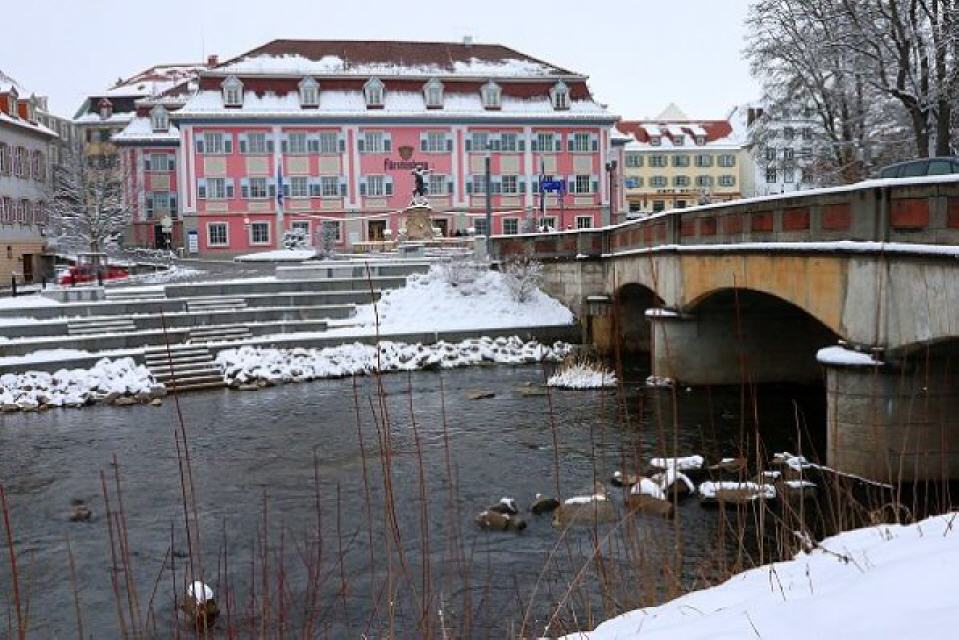 Beleuchtete Donauquelle. Nach fast dreijährigen Sanierungsarbeiten kann die Donauquelle, das Alleinstellungsmerkmal der Stadt Donaueschingen, wieder von Besuchern bestaunt werden. Die Quelle, als Geburtsort des zweitlängsten europäischen Flusses, wurde im Zuge der Neugestaltung des Residenzbereiches einer grundlegenden und technisch wie denkmalpflegerisch anspruchsvollen Sanierung unterzogen. Ein Aufzug ermöglicht nun einen bequemen und barrierefreien Zugang. Der Quelltopf erstrahlt mit seinen hochwertigen Bildhauerarbeiten in neuem Glanz und ist ganzjährig eine Reise wert. Die beleuchtete Donauquelle, die in den Wintermonaten bis 18 Uhr zugänglich ist, fasziniert mit einem ganz besonderen Charme. Lassen Sie sich vom Zauber der aufsteigenden Wasserbläschen begeistern, bevor sich das Quellwasser auf seine lange Reise ins Schwarze Meer begibt und hierbei die verschiedenen Kulturen Europas von West nach Ost auf eine einzigartige Art und Weise verbindet.