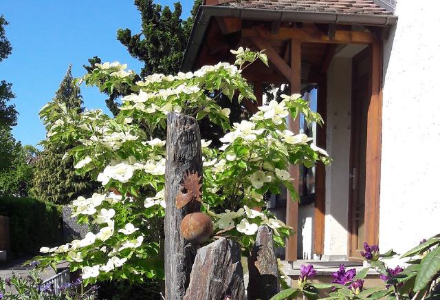 Das Haus Ketterer in Bad Dürrheim Hochemmingen im Schwarzwald-Baar-Kreis ist modern und gepflegt eingerichtet, allergikerfreundlich; es bietet eine Ferienwohnung sowie ein Appartement. Hier wird es Ihnen an nichts fehlen. Die Kureinrichtungen sind nah. Zum Haus gehört eine große, schöne Gartenanlage. Sie haben freie Fernsicht zum Kurort und zum Schwarzwald. Bild antippen!
