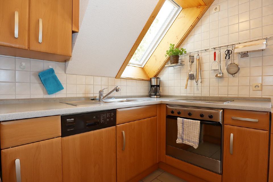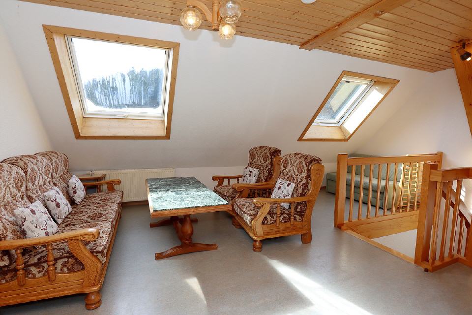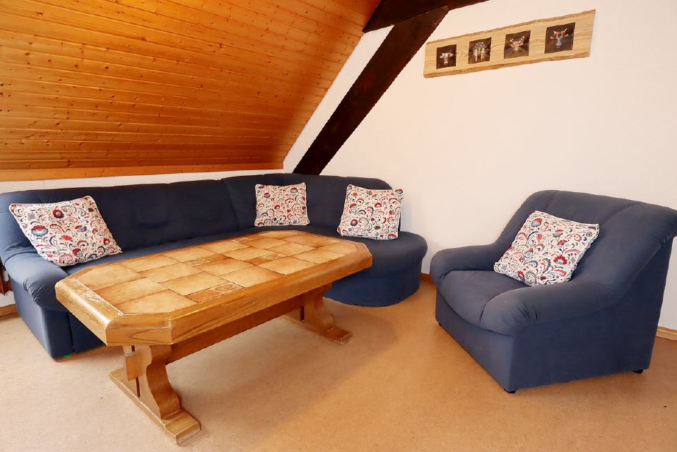 Diese Wohnung ist für Familien mit kleineren Kinder besonders geeignet. Im Dachgeschoss gibt es ein Kinderzimmer, wo die Kleinen ungestört spielen können. Sie können eigene Spielsachen mitbringen oder die vorhandenen benutzen. So sind auch einmal Regentage leicht zu überbrücken. Die Wohnung liegt in der 1. Etage und reicht bis zum Dachgeschoss. Zur Ausstattung gehören Waschmaschine, Hochstuhl, Kinderbett, Spülmaschine, Backofen mit Umluft, Mikrowelle, Spül-, Wasch- und Brotschneidemaschine.