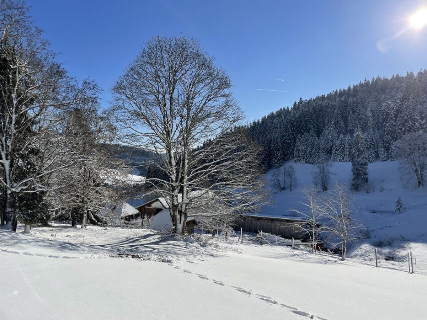 - Unser Hof wird schon seit mehreren Generationen voll bewirtschaftet. Begeistern wird Sie die Lage des Schwarzwaldhofes. Er ist ein Einzelhof und liegt in einem ruhigen Tal abseits des Verkehrs. Die Straße (Furtwangen-St. Georgen) ist 1,2 km von uns entfernt. Der Grundhof liegt in 950 m Höhe; er ist umgeben von saftigen Wiesen und herrlichen Wäldern, die zu ausgiebigen Spaziergängen oder Wanderungen einladen. An unseren eigenen Weihern sowie am nahegelegenen Bach besteht die Möglichkeit zum Angeln. Als Besonderheit für Jäger bieten wir das Jagen in unserem eigenen Hofrevier.