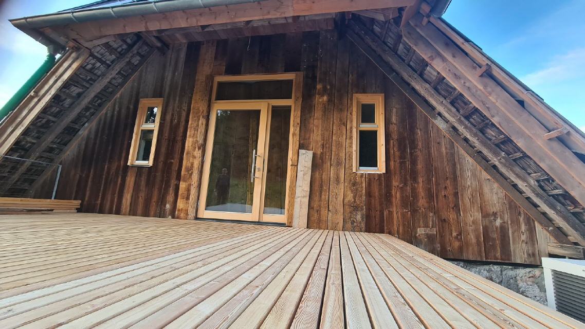Auf der Ostseite befindet sich ein Balkon, von dem aus der Sonnenaufgang beobachtet werden kann. Die Großzügige Terrasse in Richtung Westen erlaubt entspannte Grillabende in privater Atmosphäre.