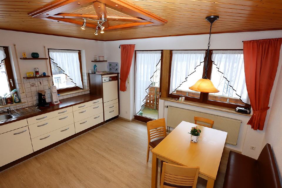 Hier können Sie schon beim Frühstück die Sonne genießen, die morgens auf den großen Balkon scheint. Am nahen Waldrand finden Sie Entspannung und Erholung. Möchten Sie spannende Ausflüge und Tagestouren unternehmen, ist eine gute Verkehrsanbindung vorhanden. Fahrrad- und Wanderwege sowie ein Skilift mit Rodelhang sind in nächster Umgebung.