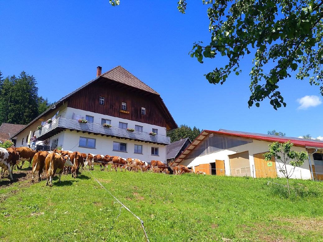 Umgeben von Wald und Wiesen liegt der Mostbronnerhof auf einer Anhöhe in einem Seitental von St. Georgen im Schwarzwald. Wir bewirtschaften den Hof mit Milchkühen und Forstwirtschaft. Außerdem leben hier Hühner, Enten, Katzen und zwei Pferde. In dieser idyllischen Umgebung genießen Sie Ihren wohlverdienten Urlaub. Die Ferienwohnung Ursprung liegt im neueren Wohnhaus neben dem Hof, das Apartment Hiesle befindet sich im historischen Leibgedinghaus.