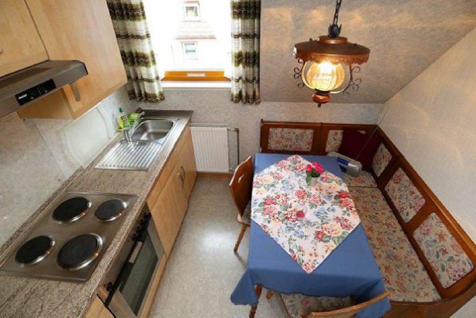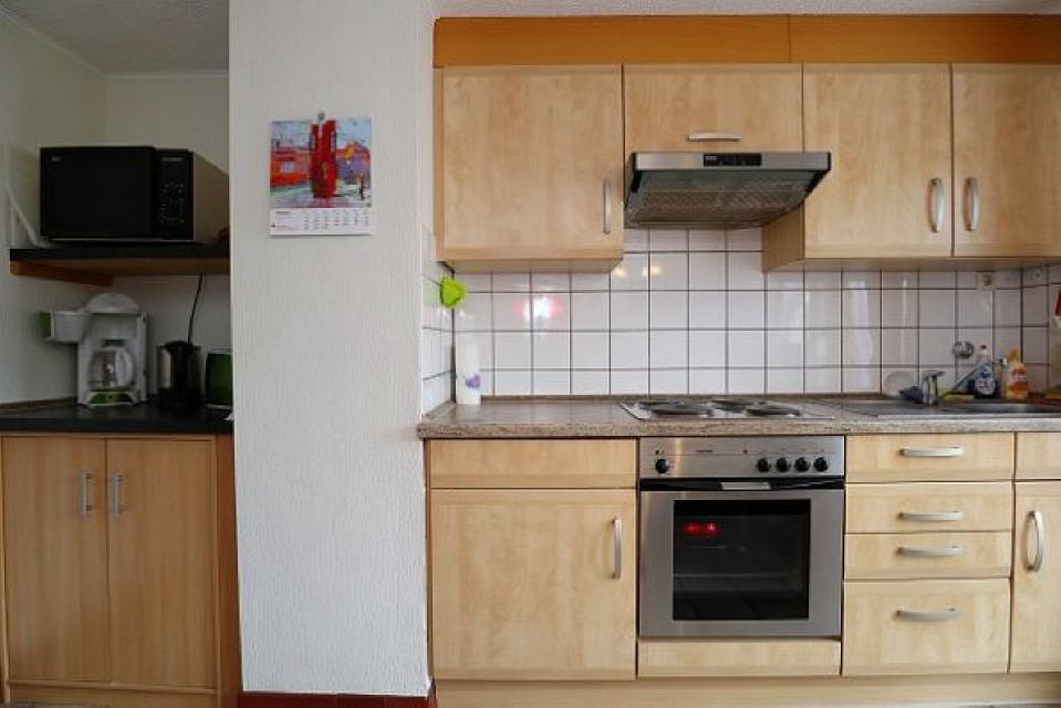 - Die Wohnküche ist ausgestattet mit Herd (Dunstabzug),