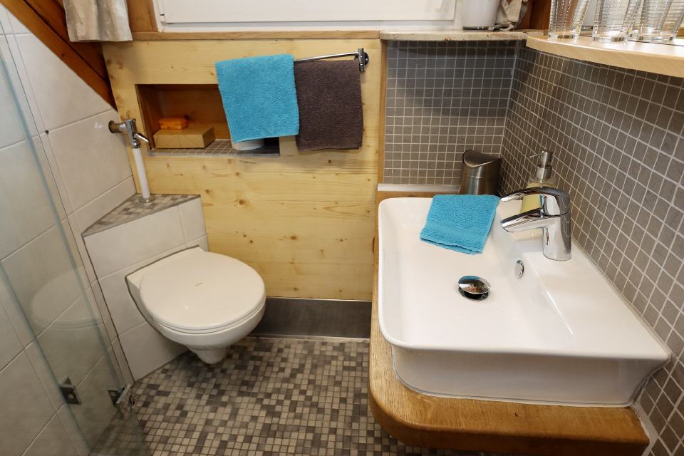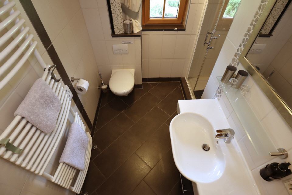 Bad (Dusche, WC, Kosmetikspiegel, Fön, Fußbodenheizung)