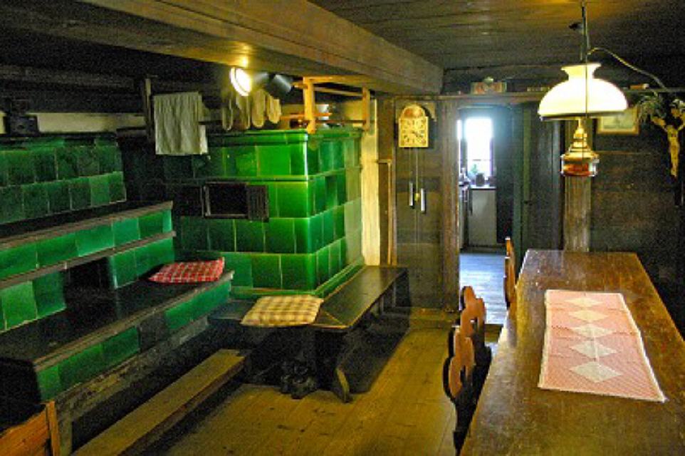 Die einzigen Feuerstellen – ohne Kamin – sind der Herd in der Küche, der die Kunst in der Stube beheizte, sowie der ebenfalls von der Küche aus zu beheizende und zum Brotbacken geeignete Kachelofen.