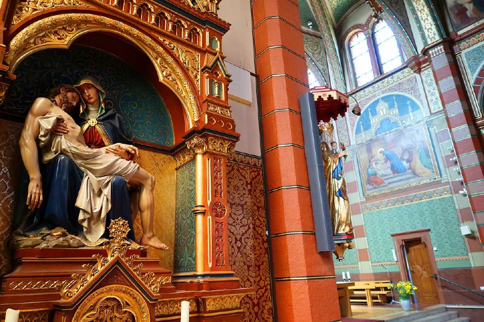 Nachdem im Zuge der Renovierung in den 1970er-Jahren der Ausleger der von Simmler & Venator gefertigten Ampel für das Ewige Licht verloren gegangen war, steht die Öllampe nunmehr direkt auf dem Tabernakel, während die Ampel in den Speicher einer Sakristei ausgelagert wurde. An der Wand links vom Altar ist noch die Wandbefestigung des Auslegers zu sehen.